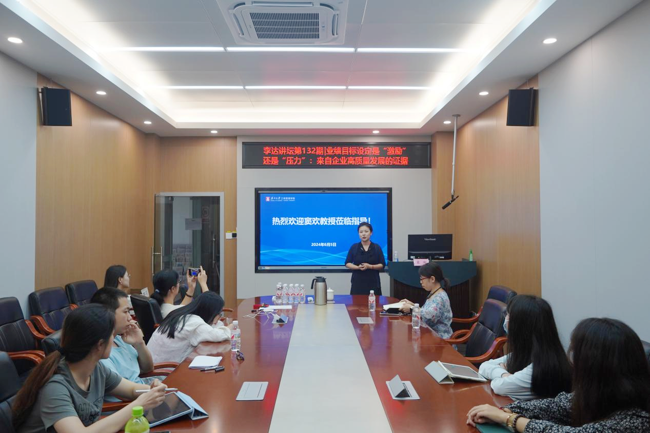 会计系副主任、博士生导师、全国会计高端人才窦欢教授受邀做客第132期“李达讲坛”,以“业绩目标设定是‘激励’还是‘压力’:来自企业高质量发展的证据”为题在蘑菇视频
