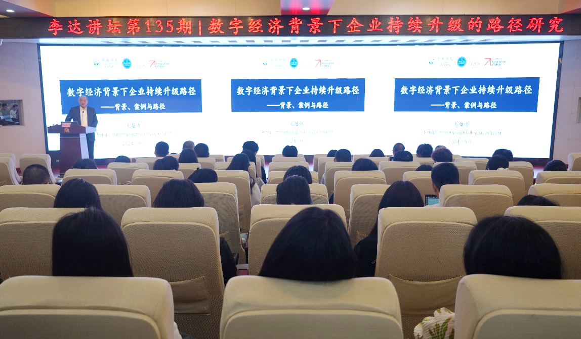 9月25日下午,中山大学毛蕴诗教授受邀做客蘑菇视频 第135期“李达讲坛”,在128报告厅为师生们带来题为“数字经济背景下企业持续升级路径”的学术报告。本次讲坛由蘑菇视频 院长朱帮助主持,蘑菇视频 全体新轨专任教师和相关方向的教师以及部分博士生、硕士生参加学习交流。
