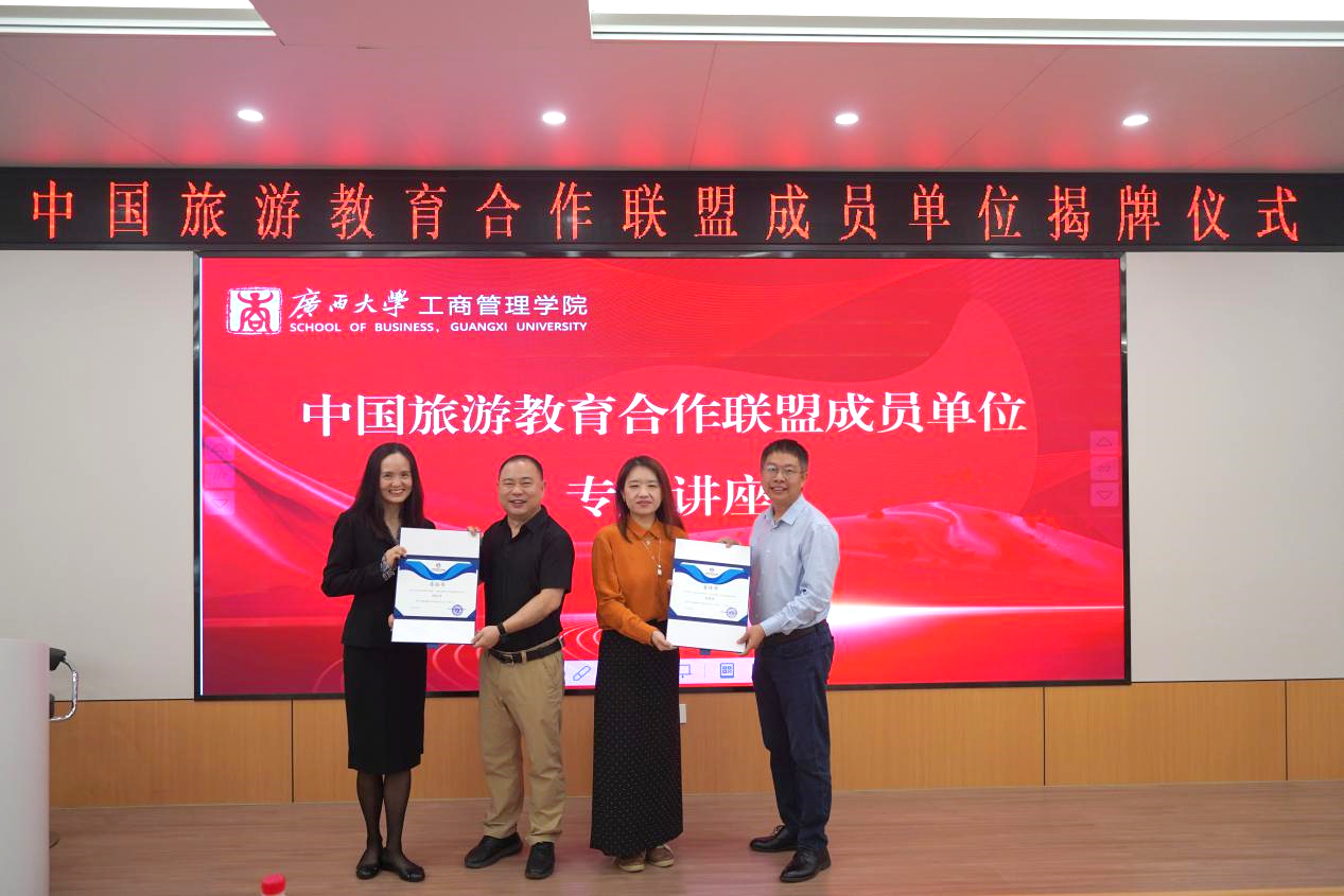 揭牌仪式后,苗莉理事长与侯远思秘书长分别为师生带来了精彩的专题讲座。苗莉理事长围绕“关于模糊边界与旅游体验的研究”进行了深入探讨。侯远思秘书长分享了“实验法在旅游研究中的运用:因果关系研究”的前沿知识,激发了师生们对旅游教育研究的兴趣。