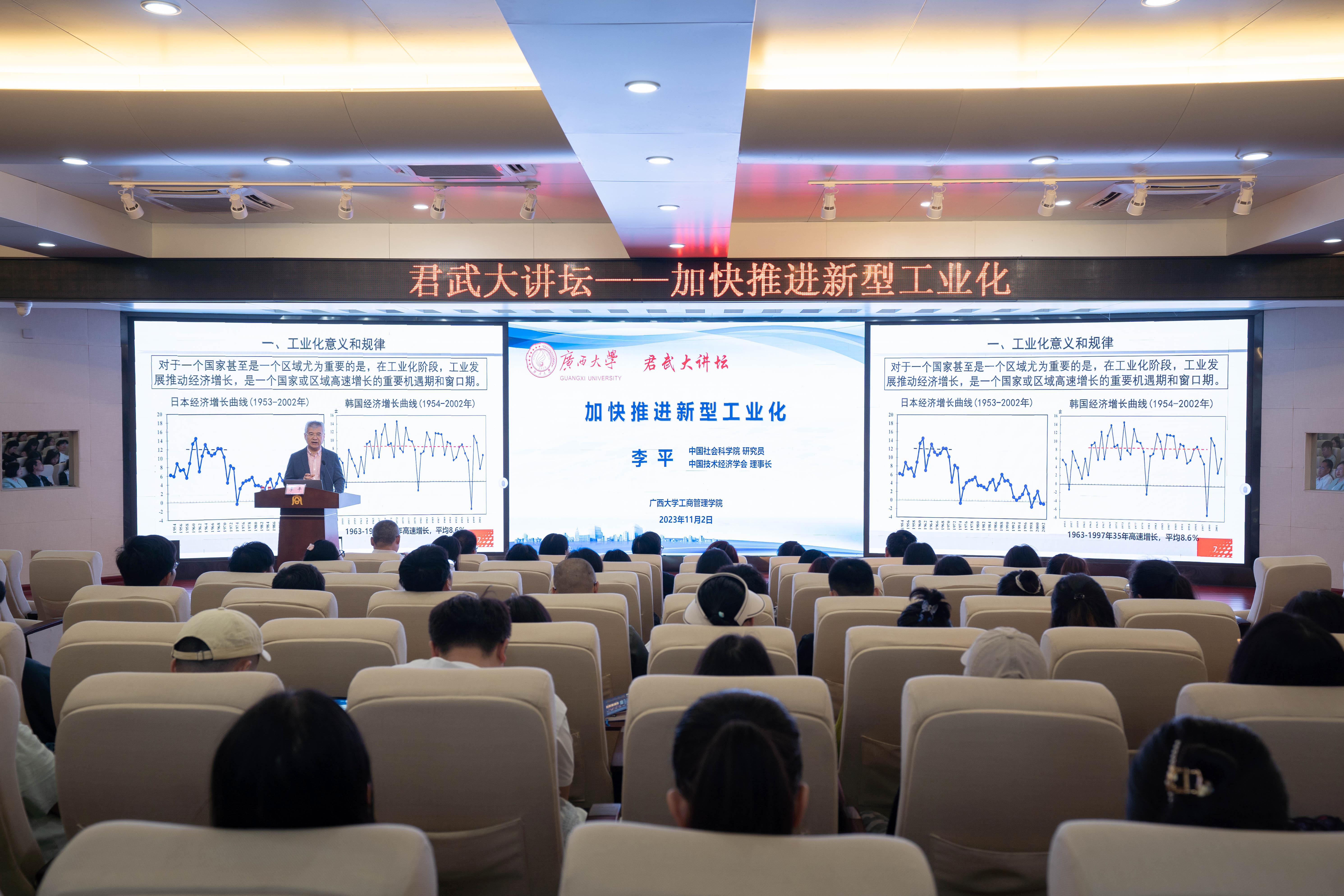 128报告厅为师生们作题为“加快推进新型工业化”的专题报告。自治区科协党组成员、副主席朱其东;中国技术经济学会副秘书长、常务理事,中国社科院数经所研究员王宏伟;中国技术经济学会会员服务部主任、高级会计师何冰;蘑菇视频