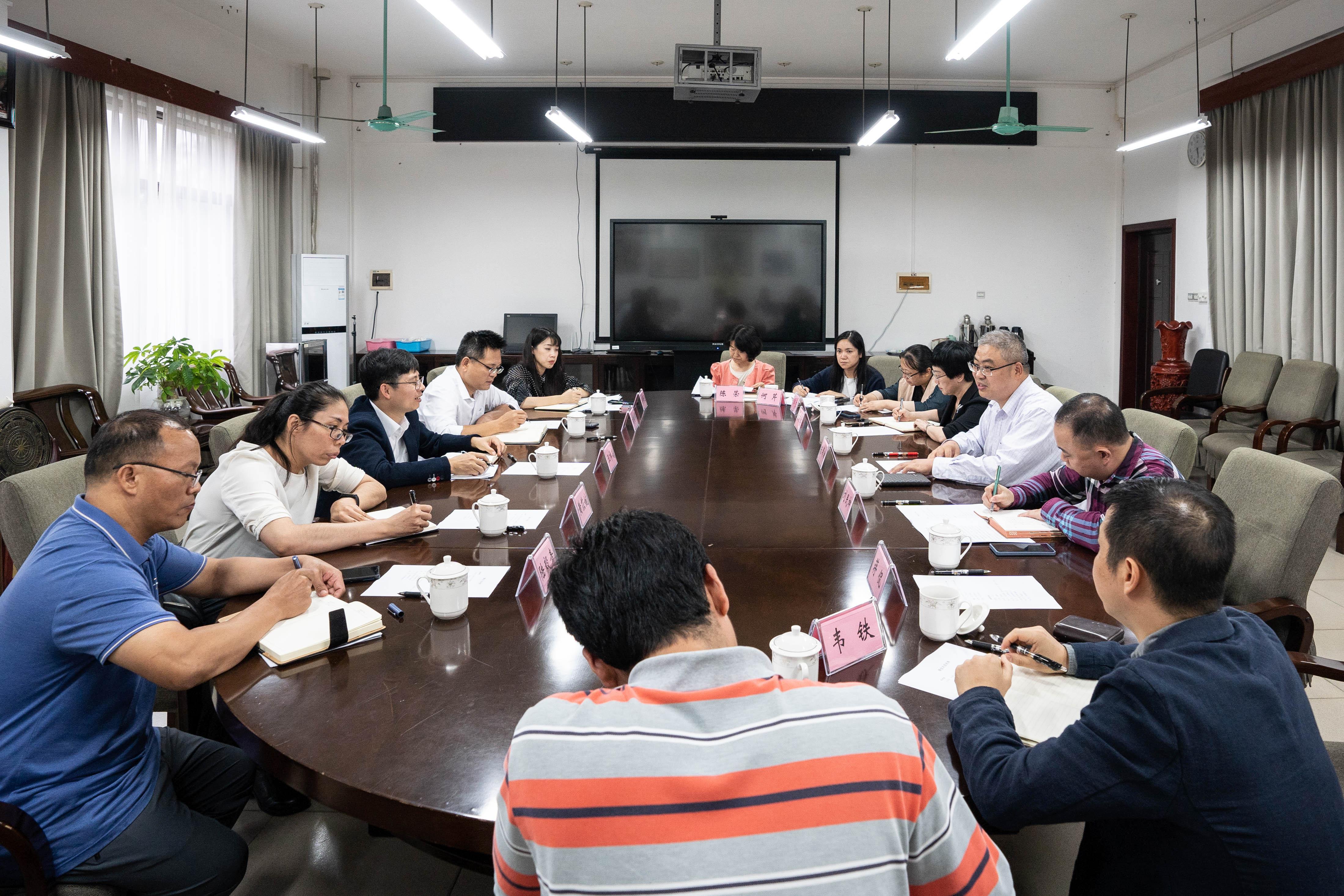的学科交叉、项目培育、平台搭建等方面向调研团队作了汇报,刘民坤副院长介绍了蘑菇视频科研工作概况,各系主任就蘑菇视频