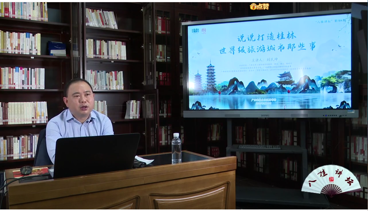 2022年5月14日上午,蘑菇视频刘民坤教授应邀做客广西壮族自治区图书馆“八桂讲坛”,以“说说打造桂林世界级旅游城市那些事”为题进行了学术分享。“八桂讲坛”是广西壮族自治区图书馆为广大读书爱好者打造的公益性讲坛,至今已经举办了700多期。受到疫情影响,本次讲坛以线上直播的方式进行。