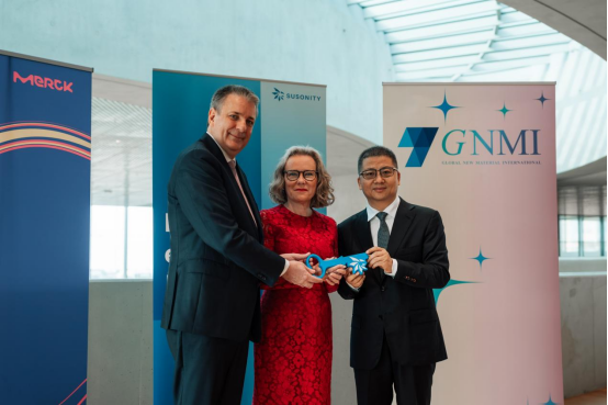 在德国并购项目签约仪式上,环球新材国际与默克集团双方代表握手留念